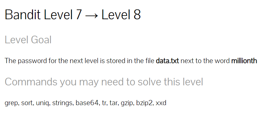 | [Bandit Level 8 -> 9] sort, uniq 명령어 사용하기 (0) | 2021.06.09 |