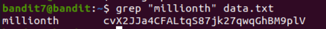 어떤 단어를 찾고 싶으면 grep "blahblah" [파일명] 이렇게 검색하면 되니까 grep "millionth" data.txt라고 쳐보았다.