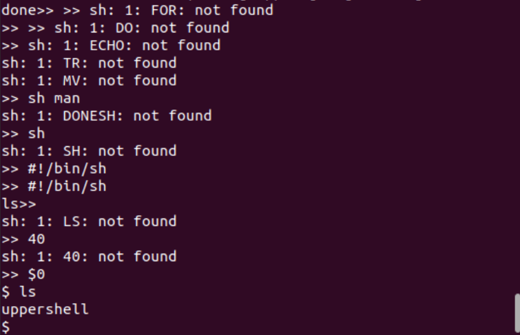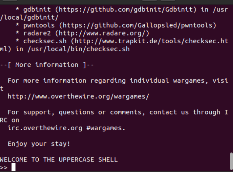 맨 밑에 WELCOME TO THE UPPERCASE SHELL 이라는 말이 있다.