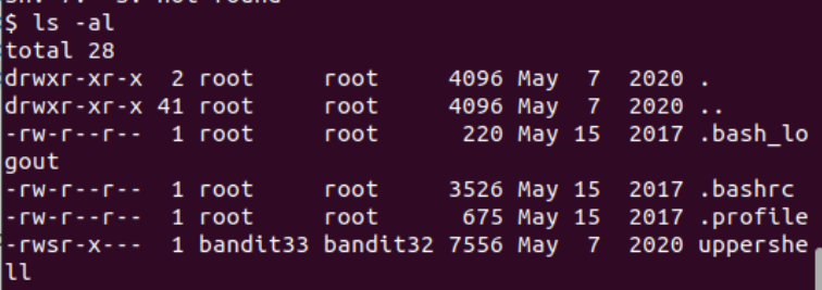 whoami를 하니까 내가 내가 bandit32가 아니가 33이란다!
