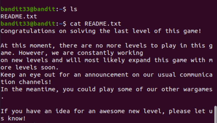 cat bandit33을 했더니 비밀번호가 읽혔다.