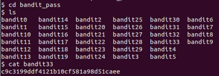 cd /etc/bandit_pass를 해서 bandit33의 비밀번호를 알 수 있지 않을까?