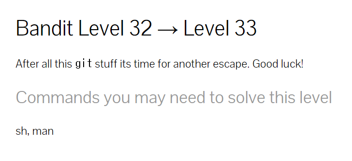 근데 저 쉘을 통해서는 bandit33 접속이 안되길래 그냥 다른 터미널에서 진입했다.
