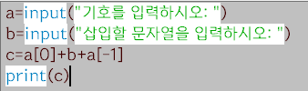 도전과제 문제) 사용자로부터 기호 2개를 입력받고 그 사이에 추가로 입력받은 문자열을 삽입하는 프로그램 만들기