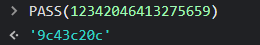 아까 힌트에서 얻은 숟자를 PASS함수 매개변수에 넣어봤는데, '9c43c20c'라는 숫자가 나왔다.