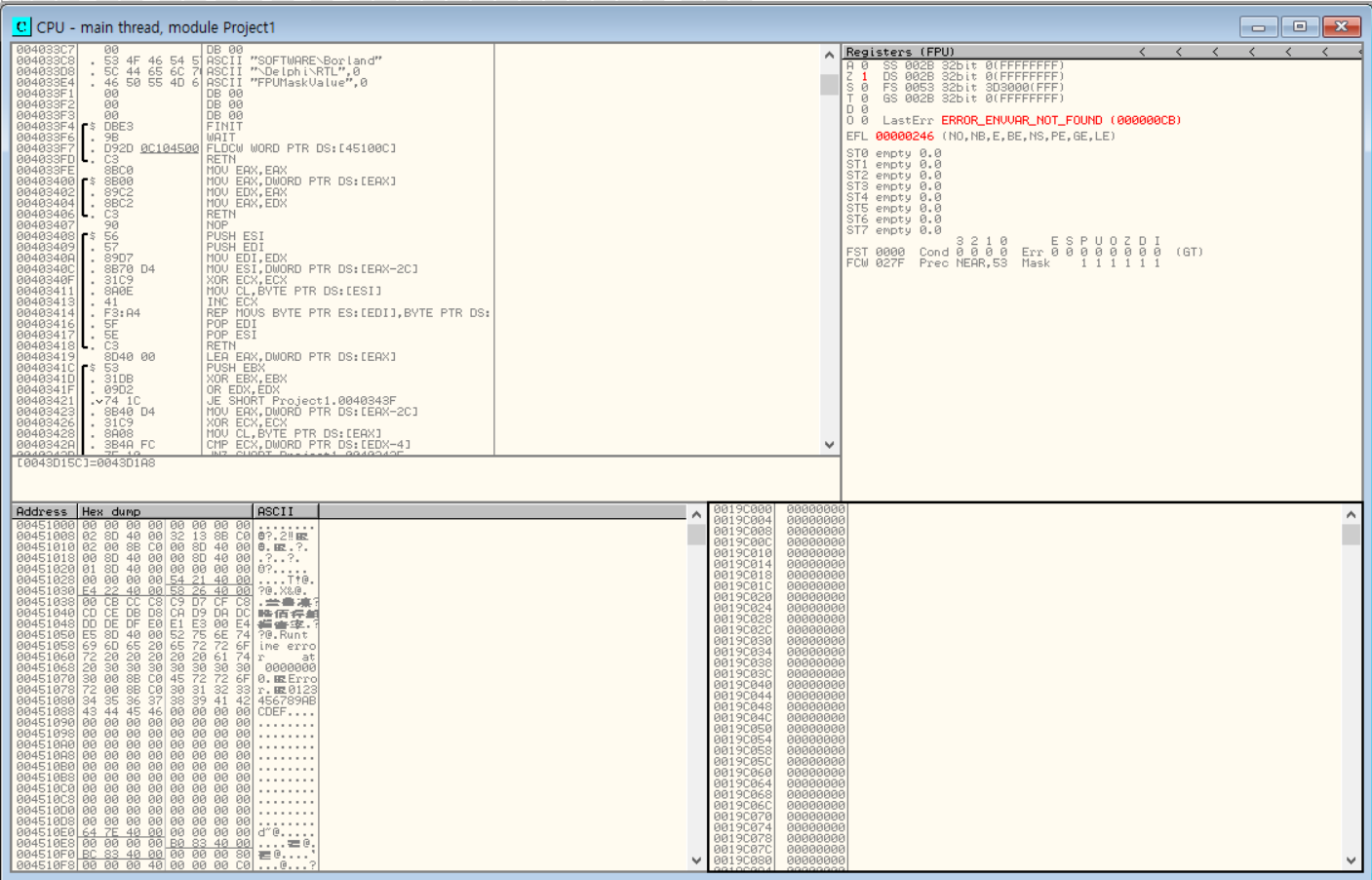 Project1이라는 exe 파일이 하나 들어있었다. 제대로 실행은 되지 않는거 같다.