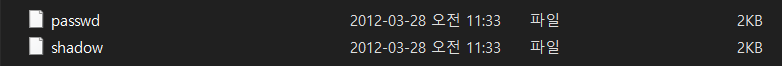 passwd 파일과 shadow 파일 두 개가 있었다. 리눅스에 있는 그 비밀번호 파일들을 암시하는거 같다!