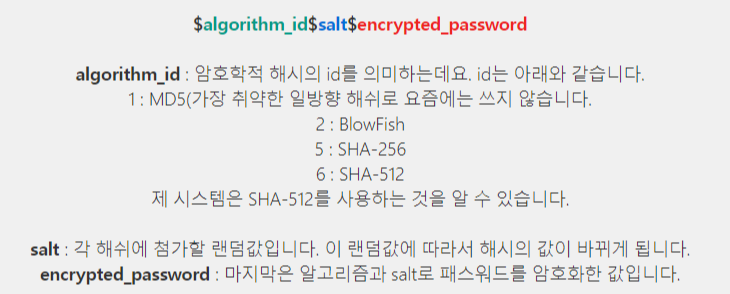 아니.. SHA-512 복호화 안되는줄 알았는데 이게 솔트값이랑 해시값이 있으면 해독이 된다는걸.... 이제 알았다...