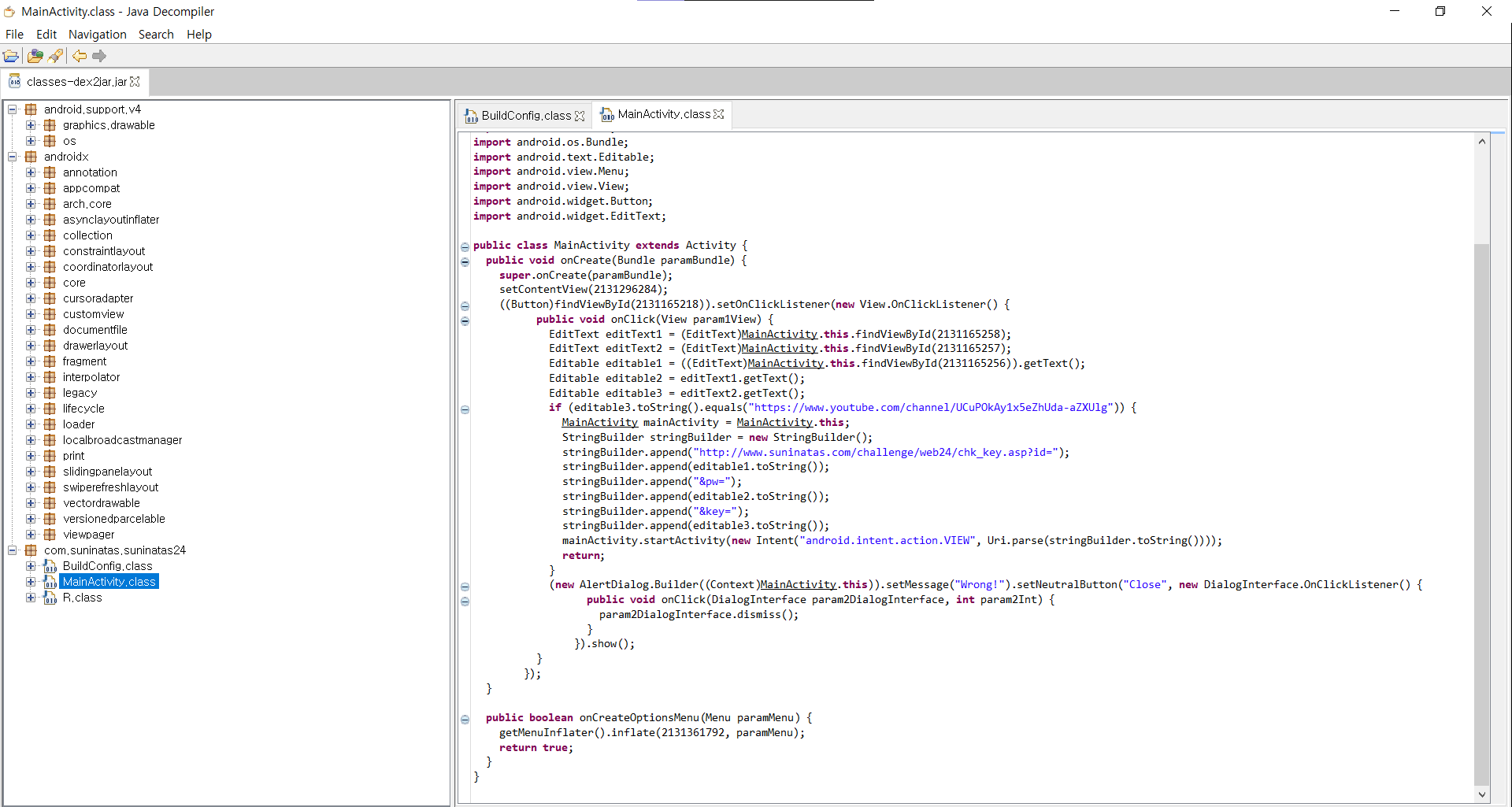 안에 폴더도, 파일도 너무 많아서 뭘 봐야 할지 몰랐는데, 아래 com.suninatas.suninatas24 이 부분 아래에 class 파일에 쓸만한게 있을거 같아 확인해봤다.