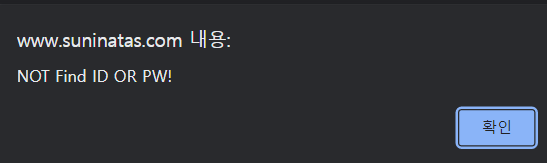 그리고 id랑 pw에 아무거나 입력해줬을땐 다음과 같이 Wrong! Wrong!이라는 문구가 뜬다.