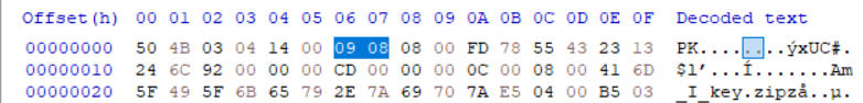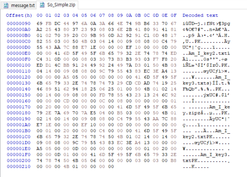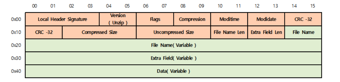 비밀번호가 걸리지 않은 압축파일에는 이 부분이 00 00으로 되어 있다.