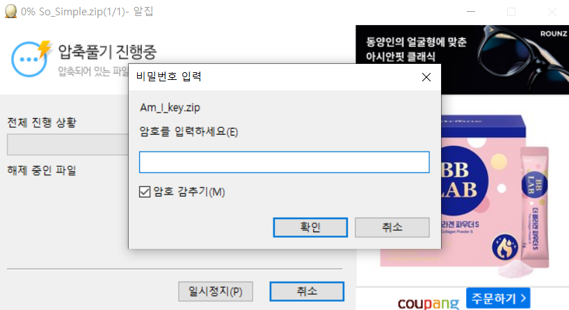 이 압축 비밀번호를 풀어야 한다,,