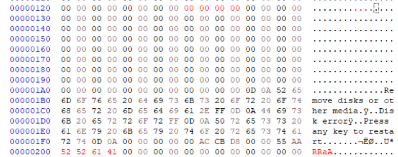 이 부분에 시그니처인 0X55AA가 나와야하는데 지금 00 00 만 적혀있다. 위를 보면