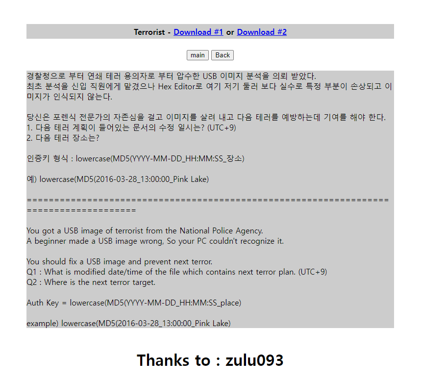 당신은 포렌식 전문가의 자존심을 걸고 이미지를 살려 내고 다음 테러를 예방하는데 기여를 해야 한다.