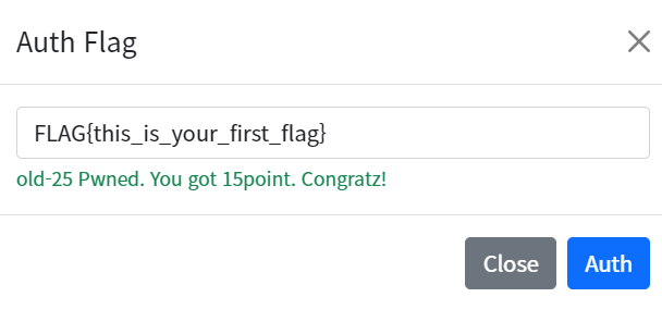 FLAG{this_is_your_first_flag} 이게 플래그 값이다.