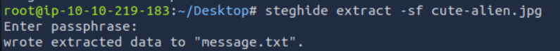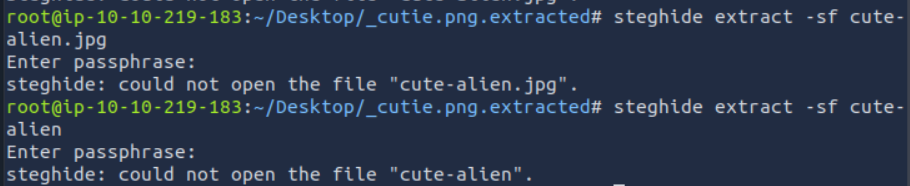 하지만 여전히 터미널에서는 steghide 비밀번호가 맞지 않다.