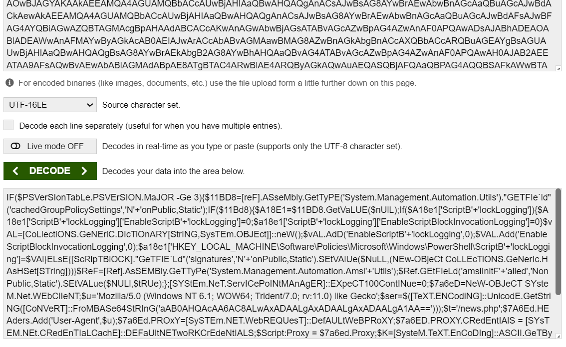 감염된 host로부터 암호화된 Powershell script가 web request에 활성화되었다. full URL이 무엇인지?