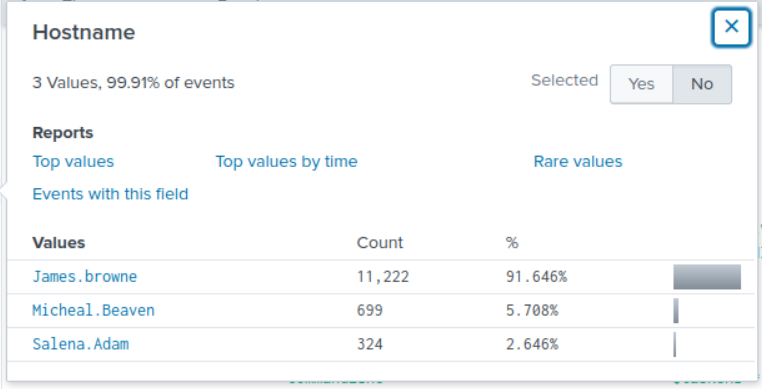 일단 field를 이것저것 확인해봤다. Hostname을 살펴보기도 하고..