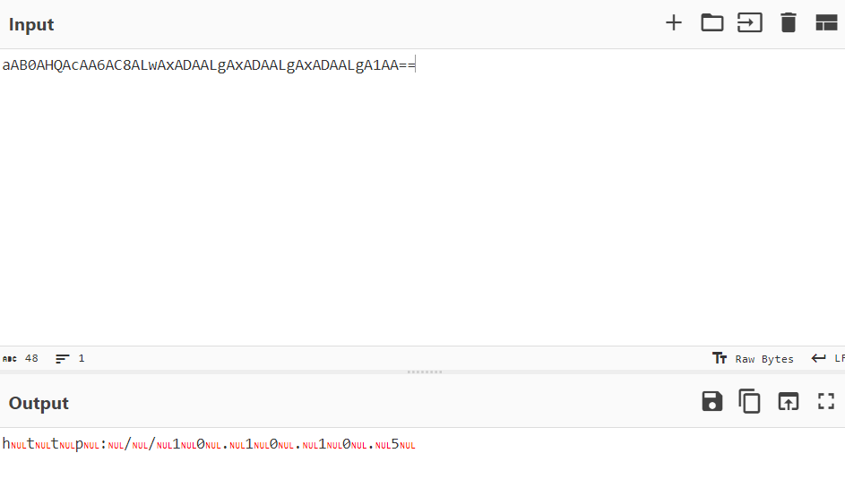 순서도 중요.. from base64 -> Remove null bytes, Defang URL로 해주어야 정상적인 결과가 나온다.