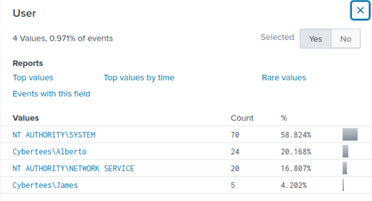 그냥 index=main을 검색했을 때 나오는 User 필드를 확인해보면, A1berto가 Alberto를 가장한 것이었다는 걸 알 수 있다.