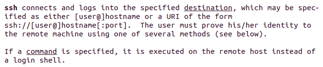 ssh가 특정한 목적지에 연결하는데, 그게 [user@]hostname 또는 어떤 form으로 된 URI로 쓰인다고 한다. 그리고 내 아이덴티티에 대해서 증명하는 건 필수.