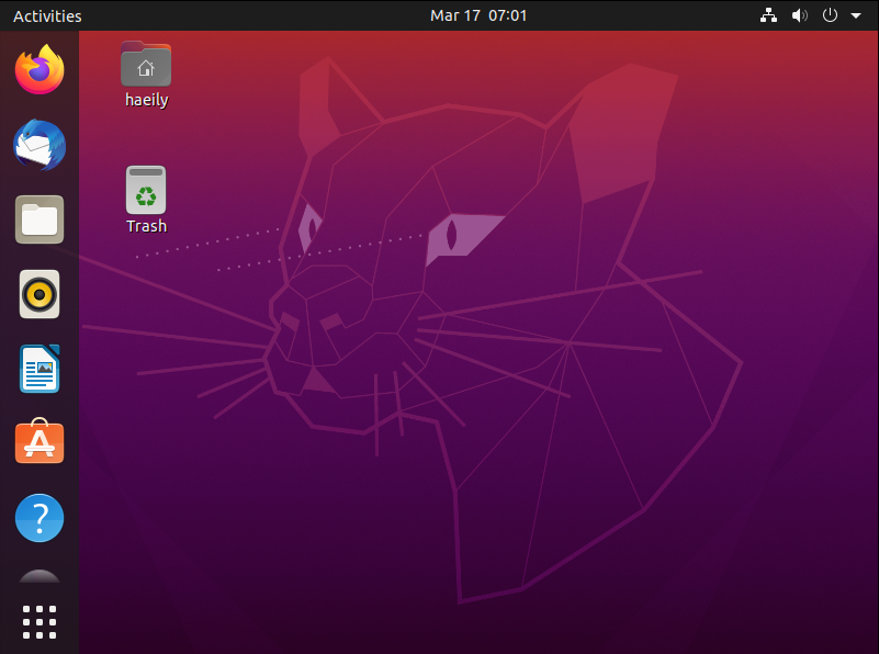 우분투를 실행하면 이런 화면이 뜰 것이다.