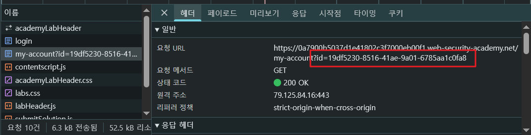 burp suite말고 개발자 도구로 주어진 내 계정에 로그인을 해봤다. id에 다음과 같이 guid가 뜬다.