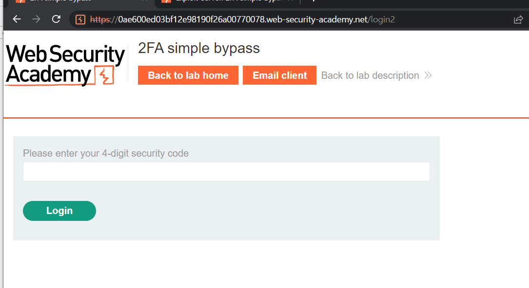 그래서 이번 실습에서는 그 우회법을 적용해볼 것이다. username이랑 password는 가지고 있는데, 2FA 인증까지는 접근할 수 없는 상황.