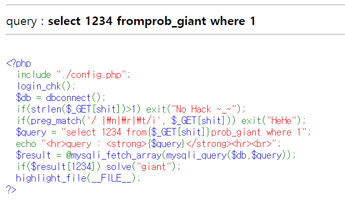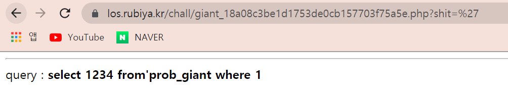 어쨌든 지금 이 쿼리문?이 제대로 작동하려면 from과 prob_giant 사이에 공백이 있어야한다.