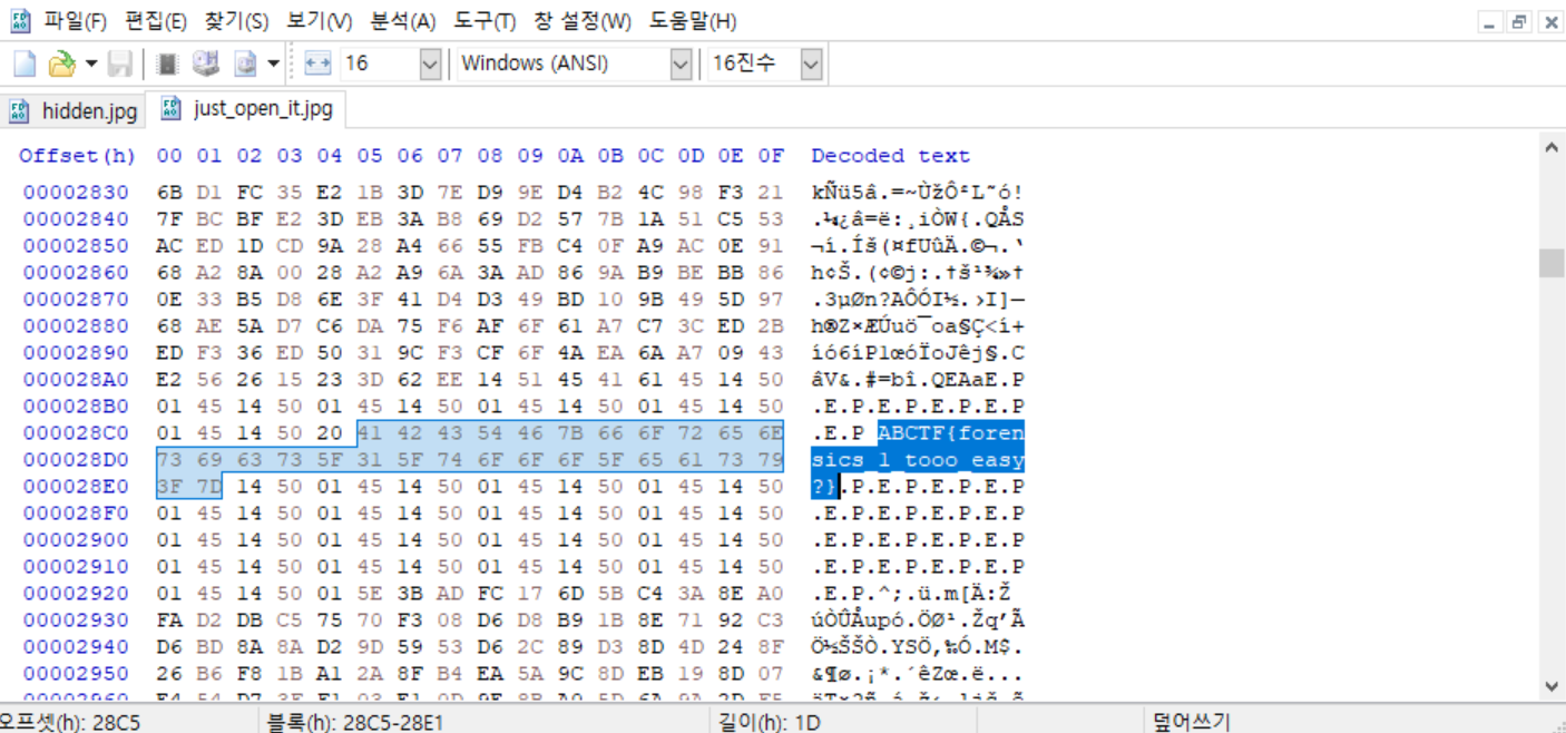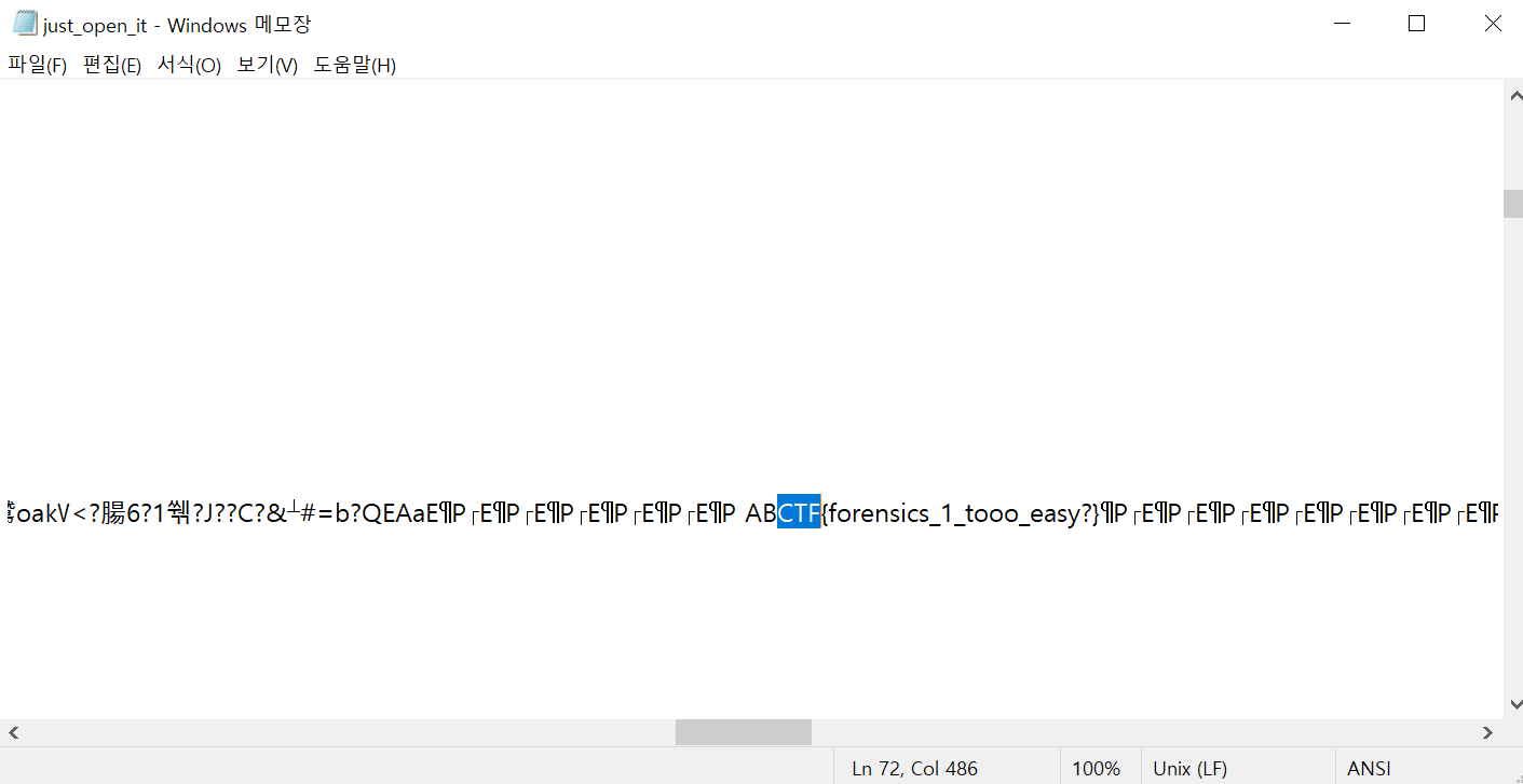플래그 값: ABCTF{forensics_1_tooo_easy?}