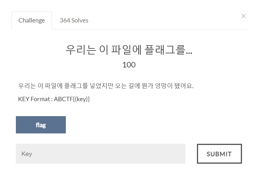 일단 KEY Format이 ABCTF{(key)} 라는건.. 알아두고