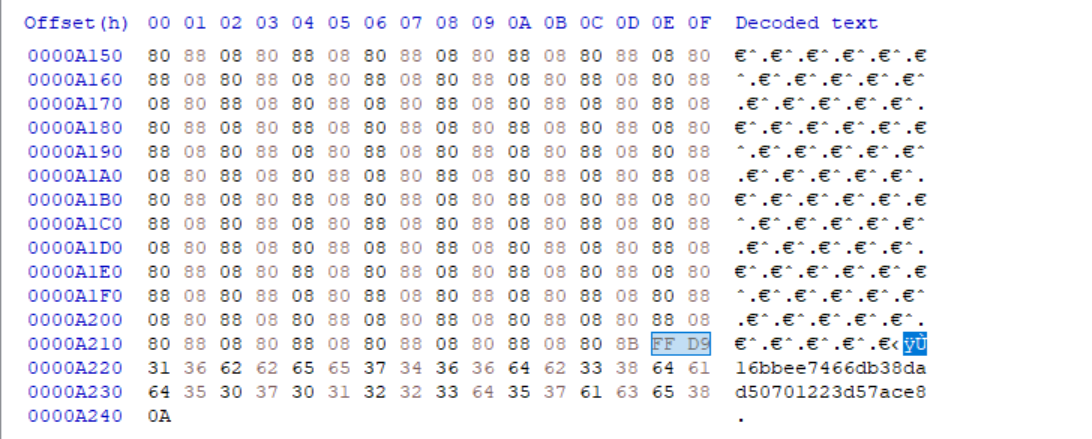 그리고 jpg 푸터는 FF D9인데 맨 끝이 아니라 조금 위에 위치해 있다.