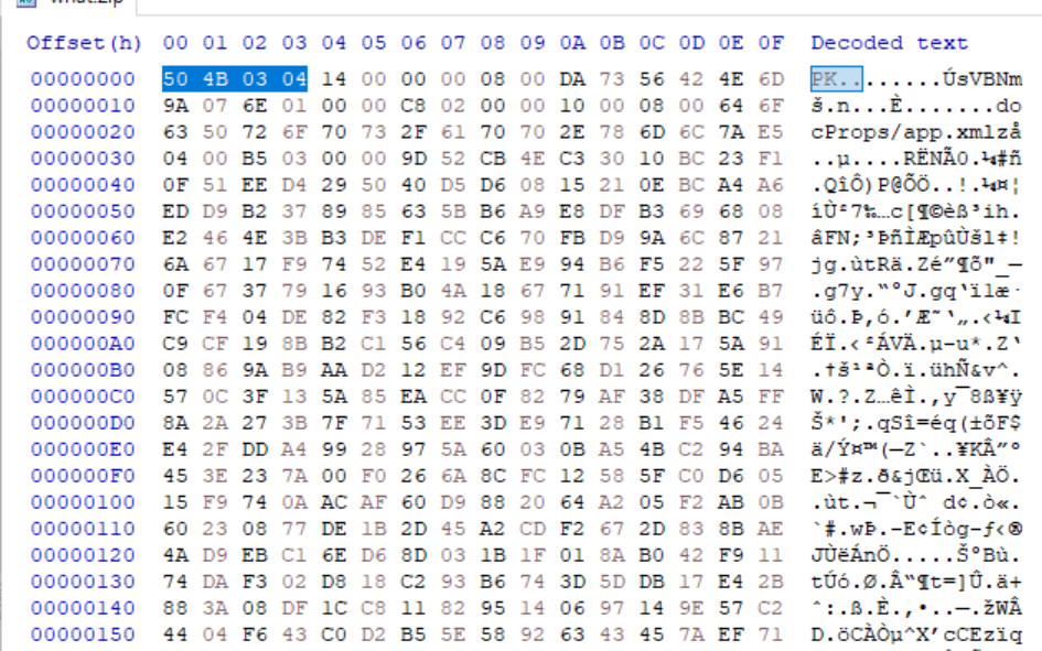 검색해보니까 꼭 zip파일이 아닌 docx 확장자도 가진다고 적혀있다. 이 안에 파일을 숨겨서 그런가