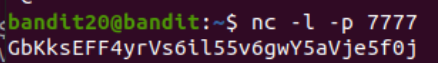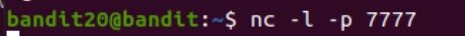 일단 새로운 터미널을 켜서 bandit20에 접속한 후, nc 명령어를 작성한다. 나는 그냥 7777이라는 포트 번호를 적어줌.