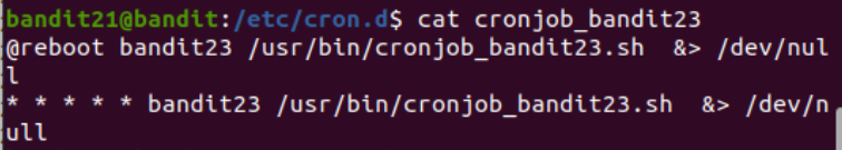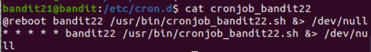 이 명령어는.. /usr/bin/cronjob_bandit22.sh 쉘을 /dev/null로 보내는거 같다. 매분마다, 그리고 재부팅시마다!