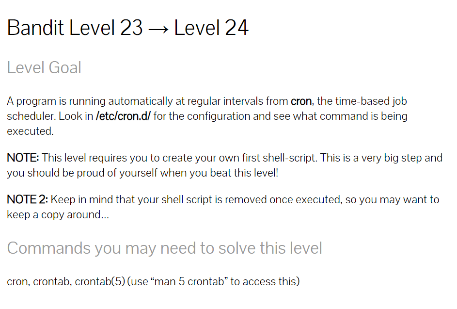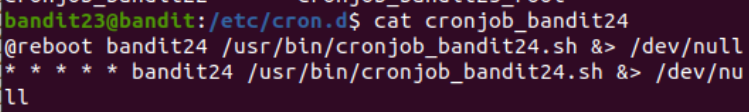 아까 봤듯이 bandit24에는 내 권한으론 무슨 파일이 있는지도 모르고 실행이 안되지만 cron 명령어에 의해서 내가 만들어놓은 파일을 실행할 수 있게 된다.