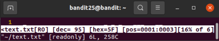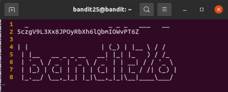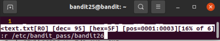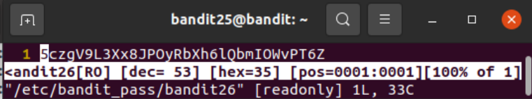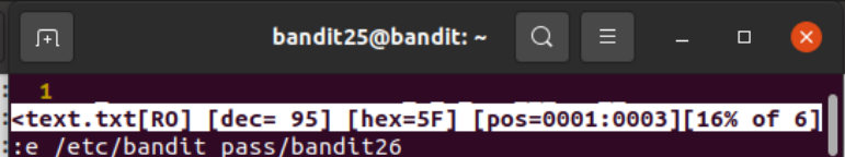 : e 옵션을 줘서 /etc/bandit_pass/bandit26을 쳐주면