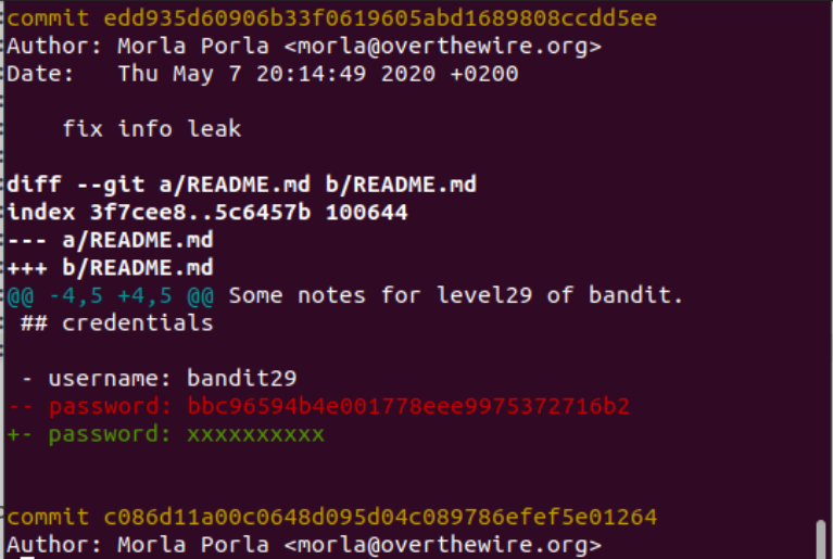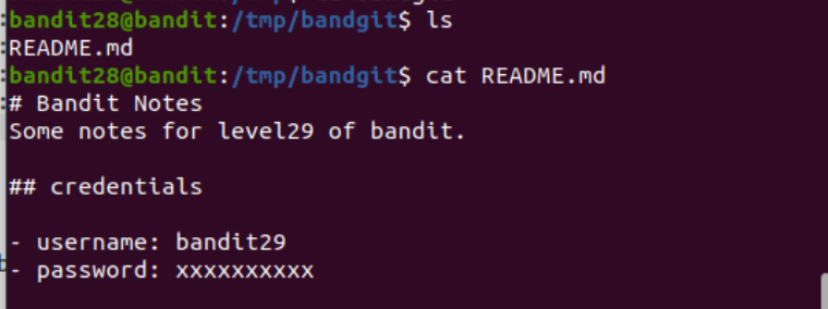 그리고 username: bandit29, password: xxxxxx 이렇게 적혀있었다.