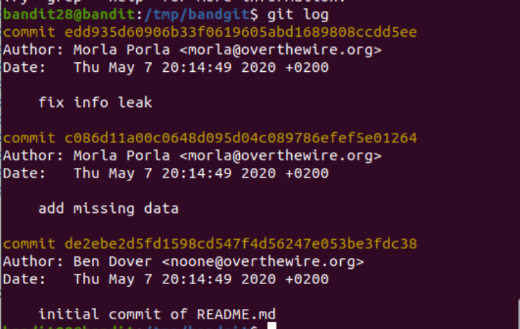 어쨌든.. bandit27 레벨이랑 비슷하게 git 명령어를활용하는 문제다.