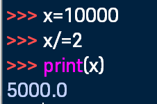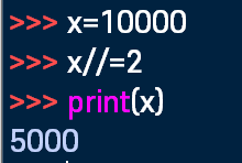 x//=2는 x=x//2니까 10000/2의 몫인 5000이 출력 될 것이다!