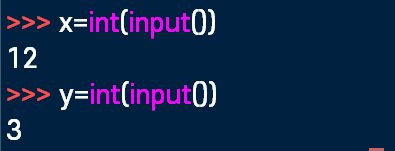 x, y 변수에 12와 3을 입력하고