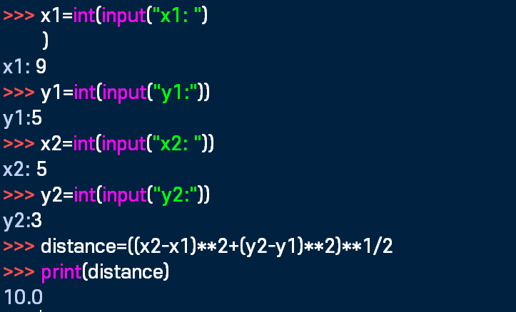 (x2-x1)2+(y2-y1)2 값을 제곱근해서 계산하면 되는데, 제곱근은 1/2승으로 계산하면 된다.
