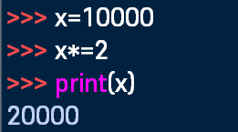 x*=2는 x=x*2라는 말과 같으니까, 10000*2=20000이다.