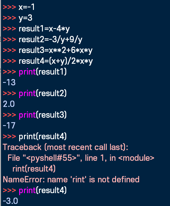 x=-1, y=3일 때 값을 구하는 프로그램 만들기