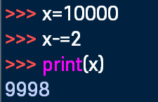 x-=2는 x=x-2라는 말과 같으니까, 10000-2=9998이다.