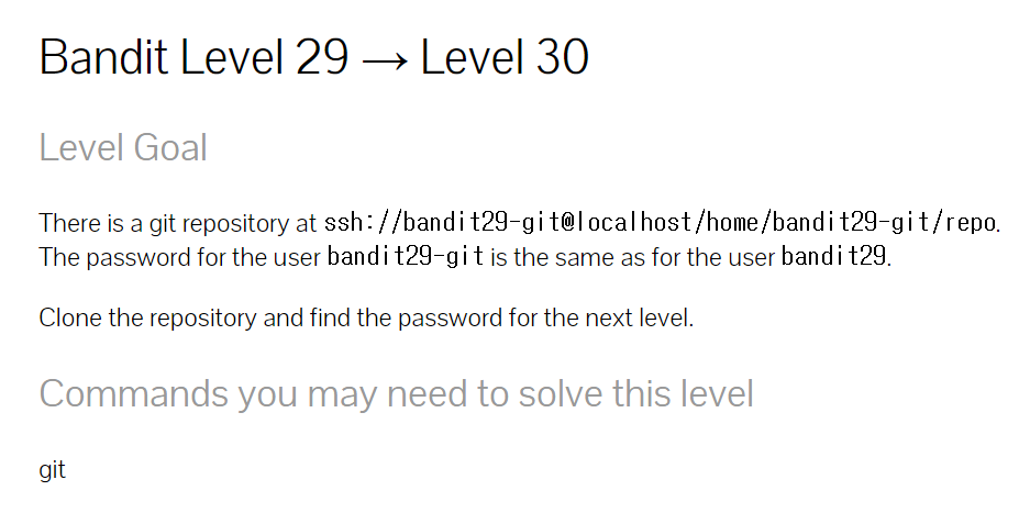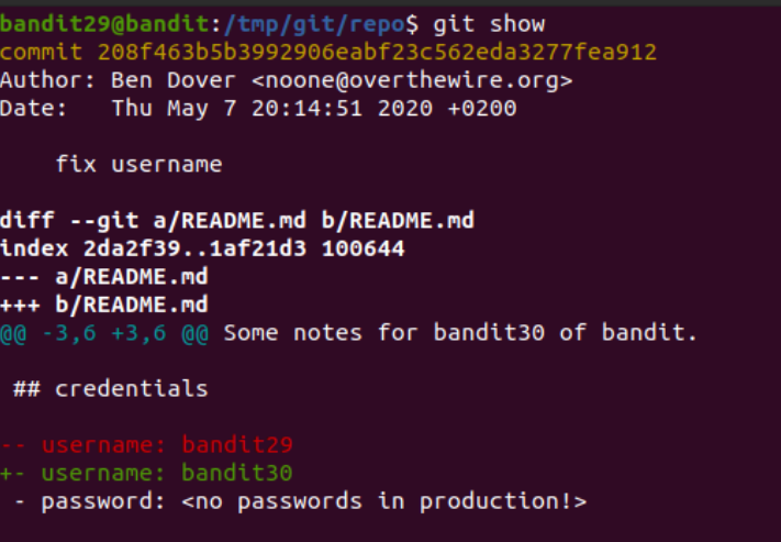 username을 bandit29에서 30으로 수정했다는 내용밖에 안보임.