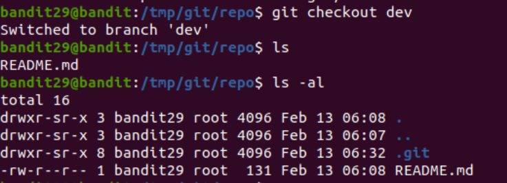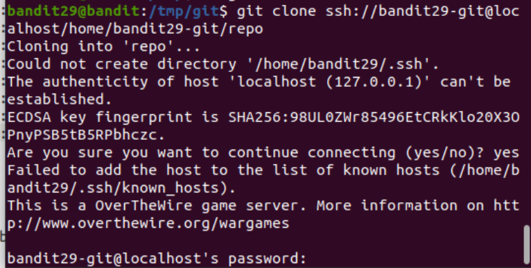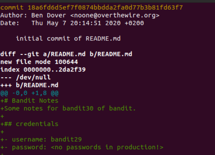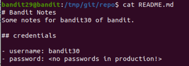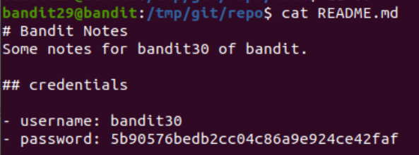비밀번호는 bandit29로 가기 위해 사용했던 그 비밀번호를 사용해주면 됨.