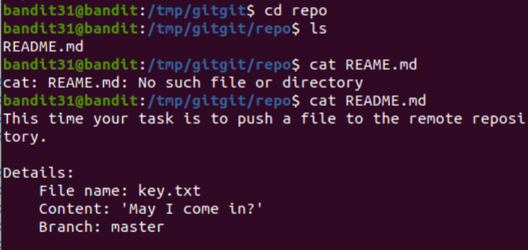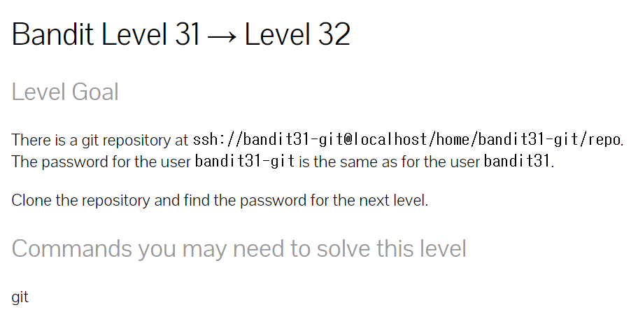 | [Bandit Level 30->31] git 활용하기 (4) (0) | 2022.02.15 |